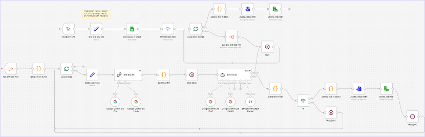 self-hosted n8n(Docker) + Google Sheets(단일 진실 원본) + Gemini 기반 자동화 파이프라인을 직접 설계했습니다. JSON/JSONL/CSV 병렬 출력과 Docker 병렬 실행 구조로 처리 속도를 극대화했습니다.